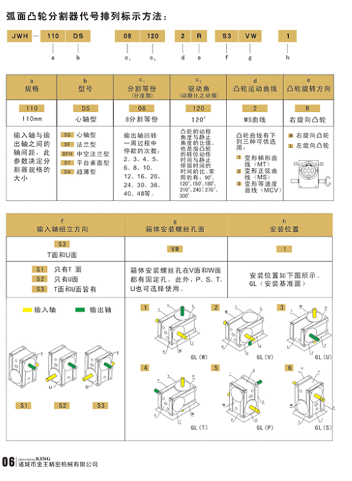 1.此系列也稱弧面凸輪分割器,此機(jī)種重負(fù)荷特性,可承受較大的垂直徑向壓力軸向壓力,其輸出軸為法蘭盤設(shè)計(jì),有凸緣、盤面螺孔、定位、銷孔、固定面寬大,可是連接更具堅(jiān)實(shí)平穩(wěn)。能適用于較大負(fù)荷的回轉(zhuǎn)式圓盤驅(qū)動場合,被廣泛使用在各類盤式加工機(jī)械及類似機(jī)構(gòu)的產(chǎn)業(yè)機(jī)械,自動化間歇驅(qū)動部、驅(qū)動圓盤。